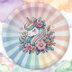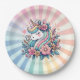Magical Pink and Gold Unicorn and Flowers Paper Plate