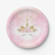 Girly Paper Plate featuring pastel pink clouds and illustration of an adorable unicorn face