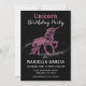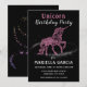 This magical design is sure to please your girl who loves unicorns for her birthday party. This girls birthday invitation design features a pretty pink unicorn with stardust sprinkles with text in pink and white.