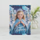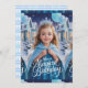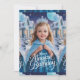 This enchanting birthday design features a young princess in a shimmering blue gown and silver crown, surrounded by floating blue balloons and a snowy winter village backdrop. The elegant script reads “Have a Magical Birthday,” making it perfect for children, especially little princess fans. Ideal for birthday cards, party invitations, or wall art, this dreamy, fairytale-inspired design captures the wonder and joy of a magical birthday celebration.