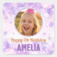 Magical Purple Photo Happy Birthday Stickers. Celebrate her special birthday with this enchanting design! Featuring a customizable photo frame set against a whimsical background of soft purple bubbles, sparkling stars, and glitter accents. Personalize with name and age for a truly unique touch.