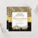 Magical Princess Quinceanera Gold Glitter Black White and Yellow Bow and Golden Trims. Cinderella Silver Diamond Horse and Carriage With a Gold Diamond pearl gem Tiara, 15th Birthday Party. Princess mis quince Party for a girl. Invitation for Formal Occasions for any event invitation. Customise to change or add details.