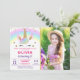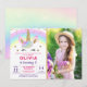 Magical Rainbow Gold Unicorn Girl Photo Birthday Invitation