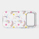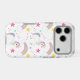 Cute unicorn phone case. This fun custom design features a sweet unicorn illustration, stars and a rainbow. Trendy pink, purple, blue and yellow colours. Change the background colour to any colour of your choice!