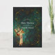 Enchanted vintage baby shower invitation featuring a fairy with a gold gilded frame and damask background in hues of emerald green.