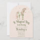 Step into a world of whimsy and wonder with the Magical Unicorn Custom Photo Pink Arched Birthday Invitation. This stunning invitation features a soft pink arched design adorned with a magical unicorn, delicate stars, and a beautiful watercolor floral arrangement. Personalise it with your child’s photo, name, and birthday details for a truly special touch.