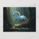 Magical Unicorn in Enchanted Forest Birthday Postcard