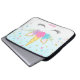 Sweet unicorn face custom laptop sleeve. Design features pink, purple, teal stars and flowers, with a touch of faux glitter.