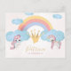 Rainbow unicorn magical day on the way pastel blue, pink and yellow gold watercolor colourful hand painted child birthday invitation postcard with princess gold crown and faux gold typography script. +++++++++++ Perfect for girls! ++++++++++++ Easy to personalise with your details on both sides.