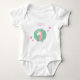 Add a magical touch to your baby girl's clothes with this custom beautiful pink and teal unicorn infant bodysuit one-piece. One piece has a colourful unicorn on top of pretty flowers. There are also hearts. Add your little girl's name for a personal touch. Also available as a baby shirt.