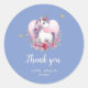 This simple blue and pink magical birthday favour sticker features a watercolour illustration of a floral unicorn surrounded by hearts and gold butterflies, accompanied by "Thank you" in elegant script typography. Customise it with your little girl's name, and use the editing tool to adjust the font size, placement, and colour to suit your needs.
