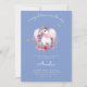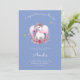 This simple blue and pink magical birthday party invitation features a watercolour illustration of a floral unicorn surrounded by hearts and gold butterflies, accompanied by the phrase "a magical time is on the way" in elegant script typography. Customise it with your little girl's details, and use the editing tool to adjust the font size, placement, and colour to suit your needs.