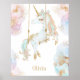 This beautiful unicorn poster is perfect for a little girl's unicorn themed bedroom or nursery, to create a wonderful magical atmosphere. This enchanting scene is a graceful unicorn seated on a swing with a flowing mane and tail in pretty pastel pink and green sparkling with faux gold glitter. The swing is suspended by delicate, shimmering golden ropes that appear to be made of intertwined strands of gold glitter. Add your child's name by clicking on the 'personalise' button. Perfect for a little girl who loves unicorns.