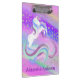 This magical clip board features a lovely Unicorn with a beautiful swirling mane and tail. Designed in purples, lavenders, and pinks with sparkly silver stars and personalised with your name. Makes a great gift for girls of all ages! Design©Rosalind Moore, Cherry Lane Designs.