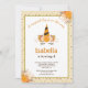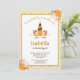This front of this beautiful, girly invitation features the text, "A magical day is on the way" in rich pumpkin orange in popular script typography, along with trendy unicorn ears and eyes with an orange and black horn and a crown of hand painted pink watercolor flowers. The customisable birthday girl's name appears in orange, followed by her age and all the party details, which you can also personalise with this template. The front of the card is bordered by a golden edge and stars on a pastel orange background, as well as orange flowers, autumn leaves and stars in the corners. The back features a matching star pattern on orange. This invitation is perfect for fall or Halloween birthdays.