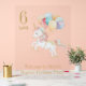 This magical unicorn acrylic sign is perfect for a little girl's birthday party to create a magical atmosphere. This enchanting scene is a graceful unicorn with a flowing mane and tail in pretty pastel pink and mint green sparkling with faux gold glitter. Floating gently above the unicorn are some watercolor balloons, each in soft pastel shades of blush pink, lavender, sky blue, and mint green, tied with thin golden strings, adding a touch of sparkle to the design, and creating a magical atmosphere. Create a magical theme for your party and add your child's name, age and message by clicking on the 'personalise' button. Perfect for a little girl who loves unicorns.