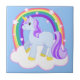 What can I say? I love girly, cute, sparkly things. I love unicorns, and rainbows, and little ponies prancing around on clouds. This cute illustration of a blue unicorn with purple hair standing on a cloud with a sparkly-starred rainbow in the background satisfies the cute craving in every little girl, or in every grown-up girl.