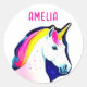 Magical Unicorn with Stars Girl Name Classic Round Sticker