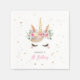 Magical Unicorn birthday party napkins. Design features a stunning watercolor unicorn face with accents of faux gold glitter, framed with delicate confetti. Just add name & age.