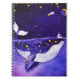 Dive into the beauty of a magic whale in the dark ocean with a night starry sky.