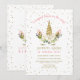 Magical White Floral Gold Unicorn Girl Birthday Invitation