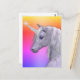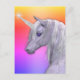 A gorgeous unicorn postcard featuring a beautiful white unicorn with magical blue eyes and a silver horn which is sparkling. Behind him is a colourful rainbow gradient pattern. This cute unicorn card would make a great birthday card or just a greeting card for a unicorn lover. Alternatively, it would also make a lovely piece of unicorn art for a little girl's bedroom wall (for instance).
