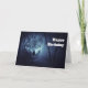 Birthday card with an image of a magical mystical wolf standing in a forest with gentle snow falling around.
