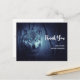 Thank you postcard with an image of a magical mystical wolf standing in a forest with gentle snow falling around.