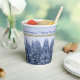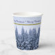 This Paper Cups features a snowy winter forest. Snowy fir trees in blue tones on a delicate background with the text "Merry Christmas". Original Photograph. Festive, custom paper cups for your Christmas Party!
