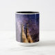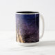 This design features a beautiful image of two tall trees rising up into the sky, surrounded by other trees in a forest. The scene is set at night-time when everything looks particularly magical and enchanting. There is a flock of birds in flight overhead. The sky is made up of a beautiful mixture of purple and blue; it is dotted with bright white stars.