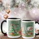 A cheerful holiday mug showcasing a whimsical watercolor Christmas tree against a sage-green backdrop. Delicate gold sparkles dance across the scene, adding a magical touch. Cosy snug mugs of cocoa and holiday gifts inviting warmth and joy. This mug also features your personal photo and message, making it a delightful keepsake for joyful memories this holiday season.