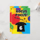 Magician hat and magic wand magical Birthday party Invitation for kids. Fun colorful template design for magic themed party. Personalize with custom name and age. Colors can be changed. Example 6th Birthday. Hocus pocus!