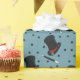 Add a magical touch to any gift with this patterned wrapping paper. it has illustrations of classic magician's hats in black and red with magic wands in black and white with fun star accents in black all set against a light blue background.