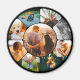 Round black magnet personalised with 9 photos of your choice. Great for your kitchen fridge, office whiteboard or to give as a family gift.