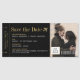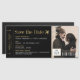 Chick Black and Gold Boarding Pass Plane Ticket Save the Date Magnet with Photo and Realistic Details and Vintage Printer Fonts. Personalise any part of the design including the background colour and fonts. A romantic aeroplane logo with a heart centre adds a cute graphic touch.