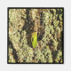 Photo of a bright green leafhopper captured buy a camouflaged spider. October 2019.