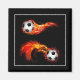 This square magnet is shown with a art print of a flaming soccer ball.