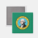 Crafted with high-quality materials, this magnet is more than just a decorative piece; it's a celebration of Washington's rich history and natural beauty. The design prominently showcases the state flag with its distinctive green field and the state seal featuring George Washington, symbolising the state's namesake and its lush forests.