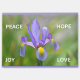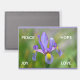 3.5" x 2.5" magnet with a picture of a purple and yellow Iris flower and the words Peace, Joy, Hope, and Love