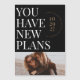 Let your guests know that they now have big plans for your wedding day. This unique Save the Date photo card features a bold white headline on a black background and reads "You have new plans" along with a customisable photo. The wedding date, couple's names, and the wedding location are provided in a stamp-like graphic alongside the bold headline. This magnetic save the date card serves as a great reminder for your guests of their new plans.