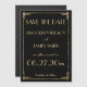 Gold foil Art Deco Great Gatsby wedding Save the Date magnetic cards (5 inches by 7 inches) with customisable text printed on black background