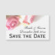 Magnetic save the date cards with pink rose photo for wedding couple. Romantic floral background image. Elegant script typography template with custom date and personalised names. Beautiful photograph for soon to be married bride and groom. Help guests remember the wedding date by giving them these thin fridge magnets. Upload your own pic optionally. Part of matching collection set with custom invites.