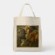 The printing came out very well, better than I had anticipated. The natural color fabric is sturdy with strong seams and comfortable handles. This tote fits easily over my shoulder. As it is filled, the bottom flattens out--very cool! I would buy this product again. This grocery tote holds a lot of groceries! The image quality was very good. The colors were a little darker than I had expected. The darkness may have been due to printing on a natural color fabric rather than on white. The cat design is attractively centered on the tote. The spirit of the design is very lively, just as it appears on the Zazzle website.
