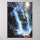 Magnificent breath taken waterfall in the forest with the sun shining through the tress. This is a AI generated art.