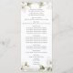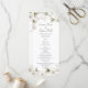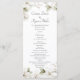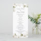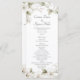 Spring wedding program with watercolor magnolia blossoms in soft neutral shades of white with blush undertones and sage green foliage.