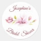 Magnolia Burgundy Floral Bridal Shower Classic Round Sticker