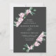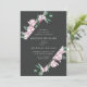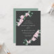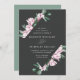 Elegant floral wedding invitations featuring your wedding details surrounded by a geometric frame of watercolor pink magnolia flowers and green eucalyptus leaves against a charcoal background. The reverse side of the magnolia wedding invitations features a solid eucalyptus green background. Designed to coordinate with our Magnolia & Eucalyptus wedding collection.