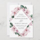 Elegant floral wedding invitations featuring your wedding details surrounded by a geometric frame of watercolor pink magnolia flowers and green eucalyptus leaves. The reverse side of the magnolia wedding invitations features a solid eucalyptus green background. Designed to coordinate with our Magnolia & Eucalyptus wedding collection.