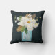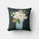 Magnolia Floral Rustic Navy Wood Blue Glass Vase Cushion