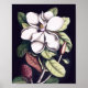 White magnolia flower on a branch with green leaves. Vintage botanical drawing.